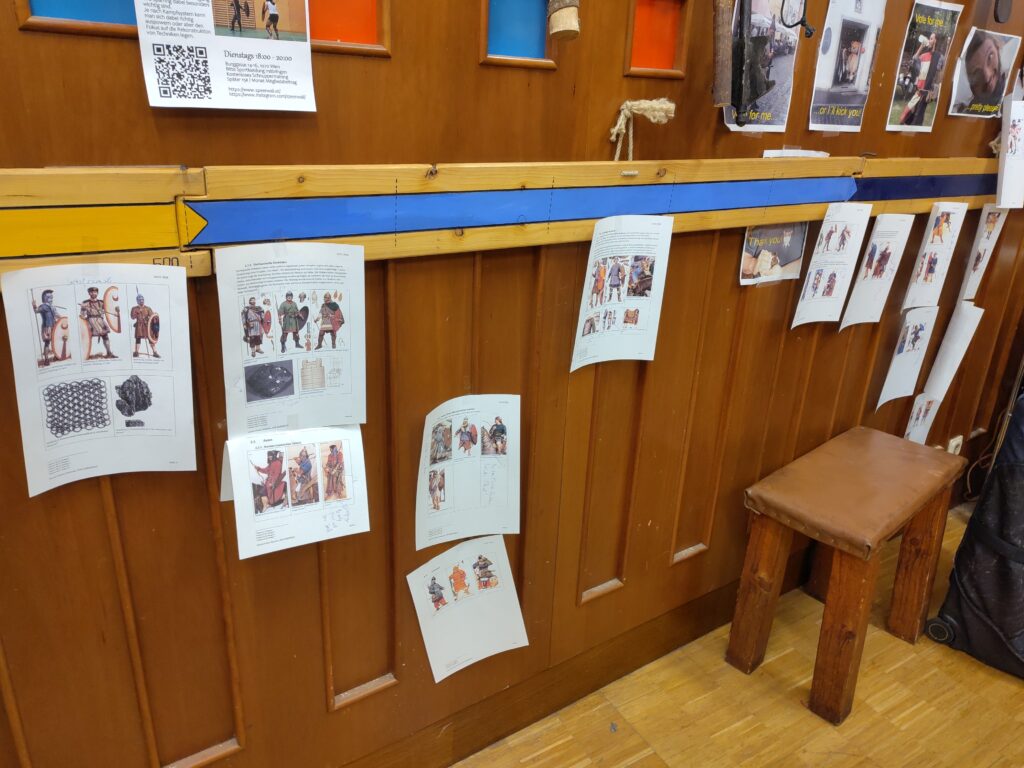 An diesem Abend sind wir vom Frühmittelalter bis zum Ende vom Hochmittelalter gekommen. Gut erkennbar wird die Entwicklung der Rüstungen an unserem Zeitstrahl. Gelb ist das Ende der Antike erkennbar. Hellblau das Frühmittelalter und Dunkelblau das Hochmittelalter. Wir haben unseren Blick auf Europa konzentriert und einen kleinen Blick in den fernen Osten gewagt. Auffällig ist, dass durchgängig Ringpanzer („Kettenhemden“) verwendet wurden. Wir haben auf den Abbildungen der Osprey Bücher einige Darstellungen entdeckt, die nicht in die Zeit passen. Mal sehen wie wir das in ein interaktives Minispiel einbauen. Das PDF (Arbeitsstand) könnt ihr euch gerne ansehen, wir passen es mit unseren neuen Erkenntnissen an.
