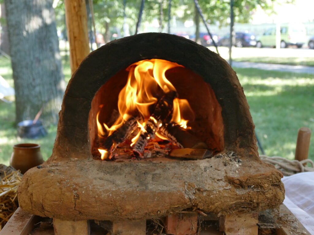 Wir haben alles aufgetrieben, um Brot im Lager zu backen. Die Mühle ist etwas kleiner ausgefallen, aber eine Wassermühle wäre schon toll. Mit einem Aufheizen können wir ein Brot backen.