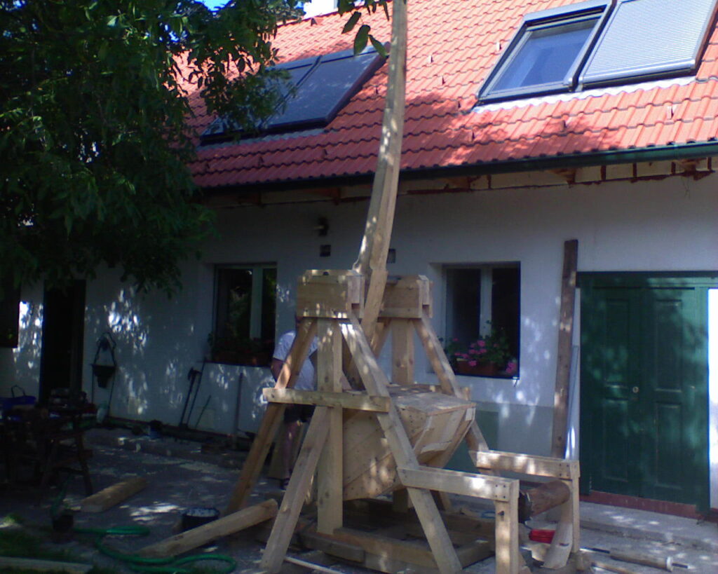 Jetzt haben wir ein kleineres Trebuchet, es sind alle Mechanismen vom Vorbild drauf. Bisher hatten alle Spaß daran die Burg aus Sperrholz um zuschießen 🙂